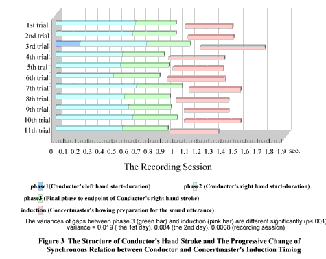 pattern in the timing between the conductorís gestures and the concertmasterís