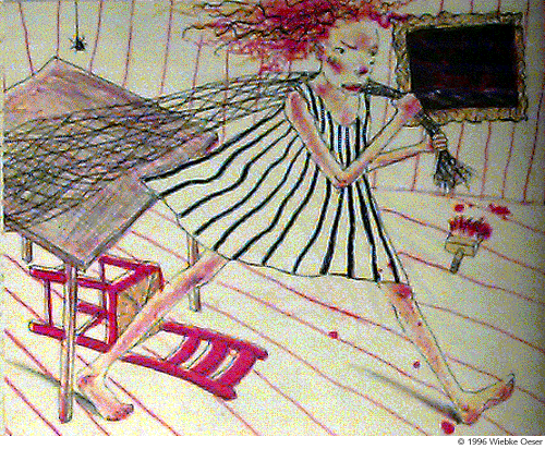 und eine mit Matschfisch - das gibt ein passendes Picknick. Berta schaltet den Computer ein und kämpft sich noch durch 21 seawarriorbattles, bis sie todmüde in ihre Hängematte kriecht. |