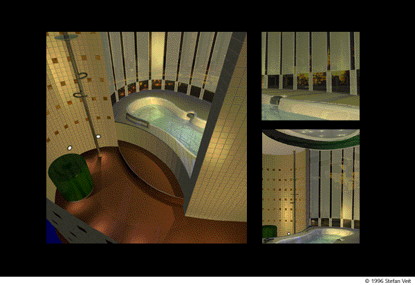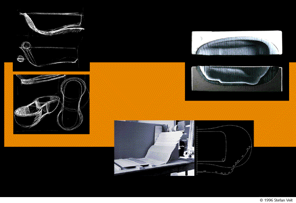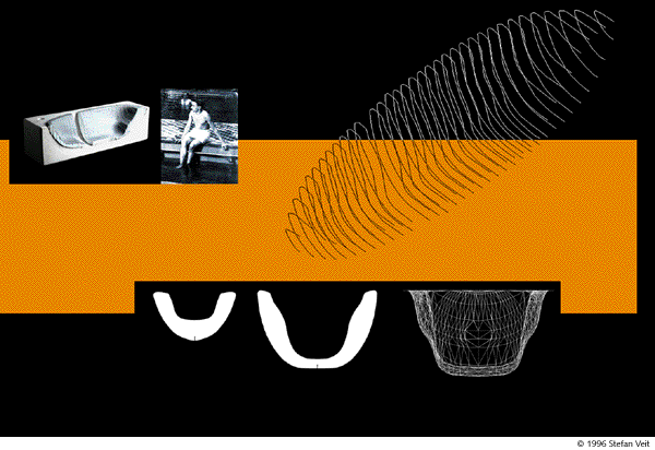Das ThemaStefan Veits Diplomarbeit in Produkt-Design allein erzeugt schon Bilder. Szenen vom Baden und von Badenden leiteten ihn zu dem Vorschlag das überkommene öffentliche Wannenbad mit neuem Ziel und Gewand wieder erstehen zu lassen. |