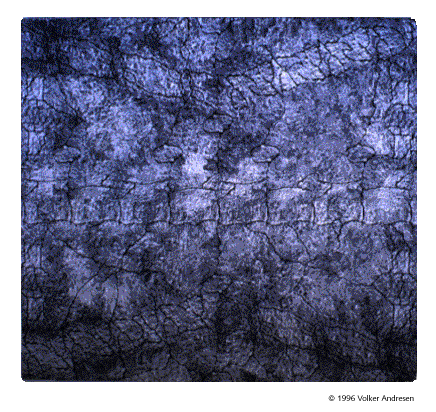 Er geht auf Distanz und sucht doch ihre Nähe. Im Zusammenhang mit der Dokumentation von Land Art Kunstwerken stellt er fest, daß die damit verbundenen Luftaufnahmen die Zentralperspektive aufheben. Ein Thema der modernen Kunst schlechthin, aber in diesem Zusammenhang ein interessanter Versuch, unsere Wahrnehmungsgewohnheiten zu überprüfen. Er reflektiert diesen Gedanken in den beiden Collagen "Klänge auf der Kippe" und "o.T." (Herrenhausen). Aus dem Chaos entsteht so etwas wie eine neue Ordnung mit eigener rhythmischer Gesetzgebung beziehungsweise eine neue Ornamentalität. | ||