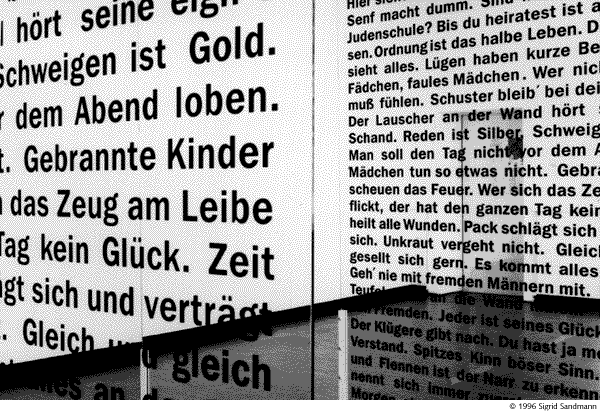 The Photo-installation, a final work of the fine arts student Sigrid Sandmann, refers to the proverbs of her childhood.